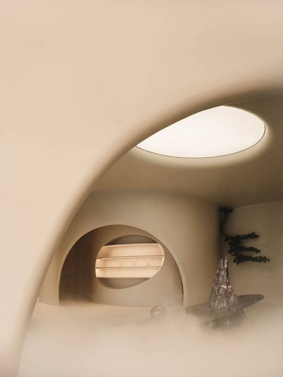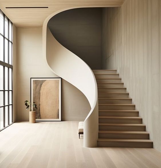 ▶ 색상과 소재 활용 곡선 인테리어에서는 색상과 소재도 부드럽게 조화되어 사용됩니다. 네추럴한 우드 톤이나 부드러운 컬러 팔레트가 곡선을 강조하는 데 사용되며, 부드러운 텍스처의 소재가 형태를 부드럽게 강조합니다.