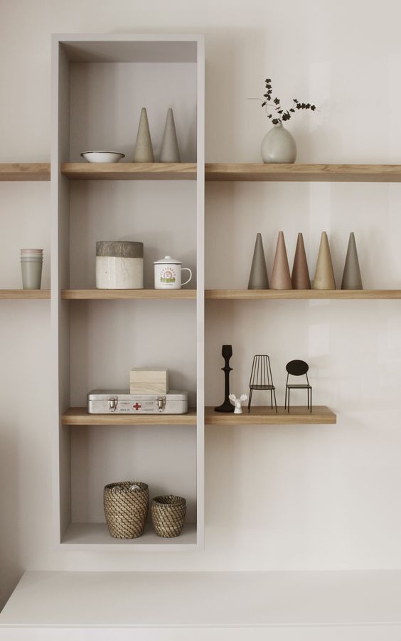 색상, 형태, 재질의 다양성을 활용하여 선반은 공간에 따뜻하고 아늑한 분위기를 조성할 수 있습니다.