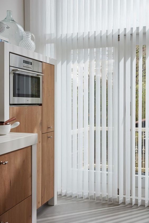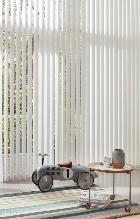 버티컬 블라인드(수직 블라인드)는 수직으로 떨어지는 슬랫으로 이루어진 창문 커버로, 큰 창문이나 슬라이딩 도어에 많이 사용되는 제품입니다.