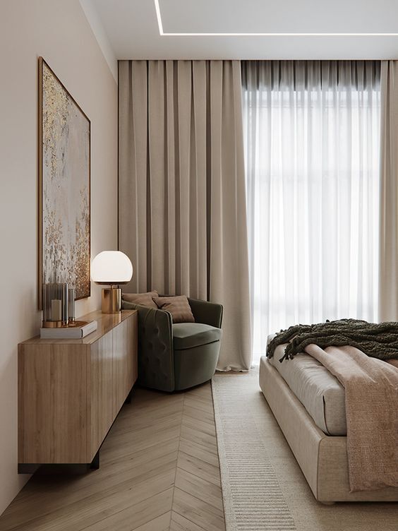 커튼을 창문 상단에서 바닥까지 길게 늘어뜨리면, 시선을 위로 유도하여 공간을 높아 보이게 만들 수 있습니다. 이는 작은 공간에서도 더 넓어 보이도록 연출하는 효과를 가집니다. 특히, 천장에 닿는 긴 커튼은 고급스러움과 아늑함을 동시에 살려낼 수 있습니다.